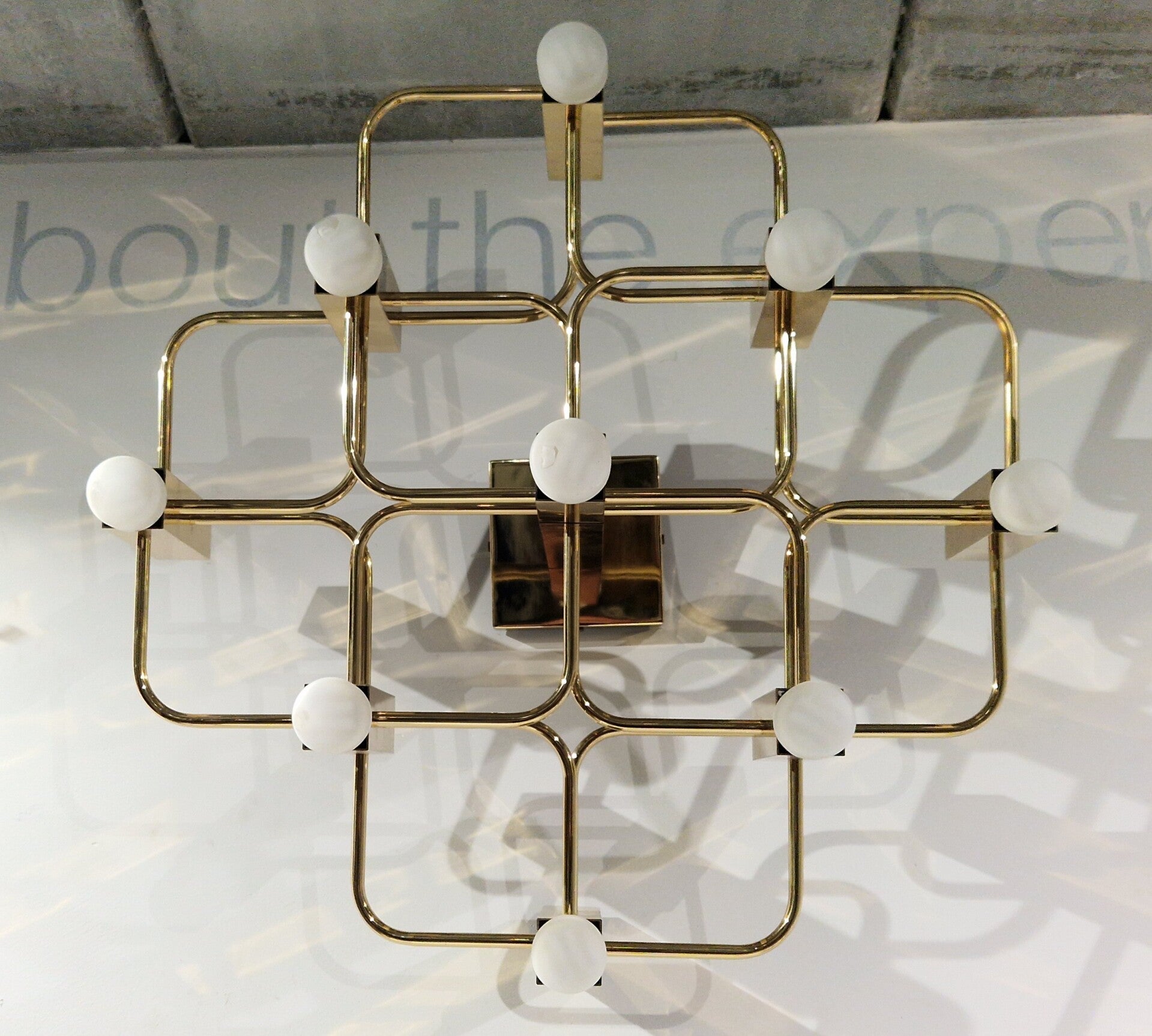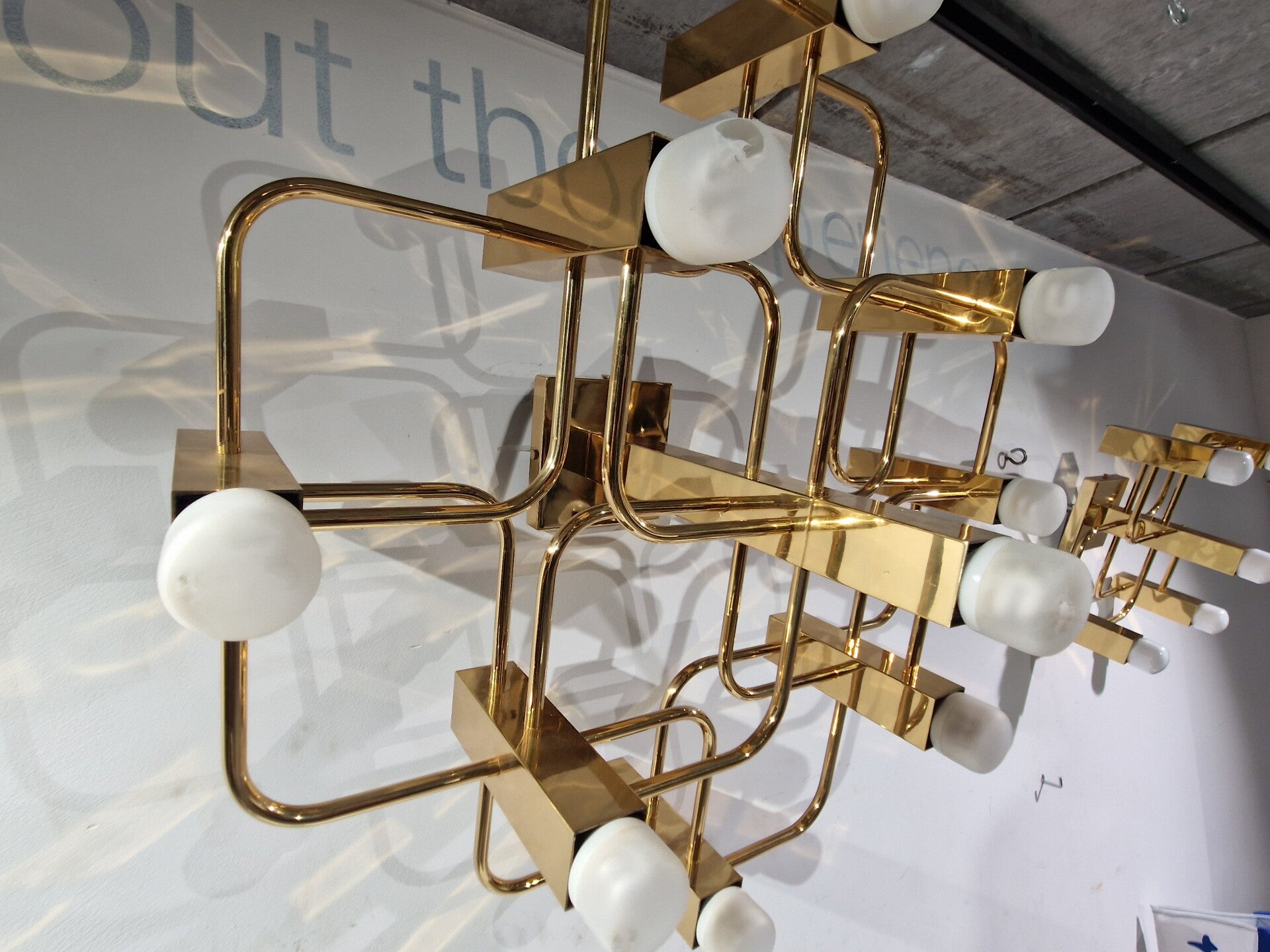9 lichtpunten, goud kleurige plafondlamp van sciolari for Boulanger. Zeer goede staat. Afmetingen ca 60 x 60 x 35 cm